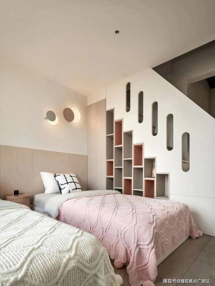 儿童房,设计师没有采用传统的 “一个房间” 概念。他们认为家应该包容所有人,不管是大人还是小孩。父母也不该什么都替孩子决定。所以,家里专门给孩子打造了一个专属空间。