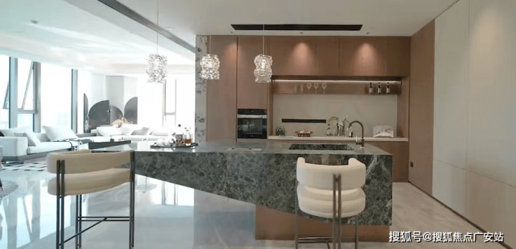 这个空间的设计很独特,既通透又有层次感。巧妙的错位设计,让每个空间都有自己的尺度感。