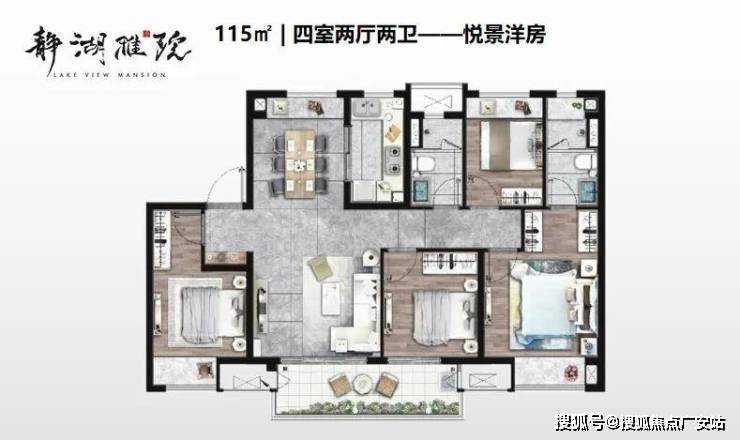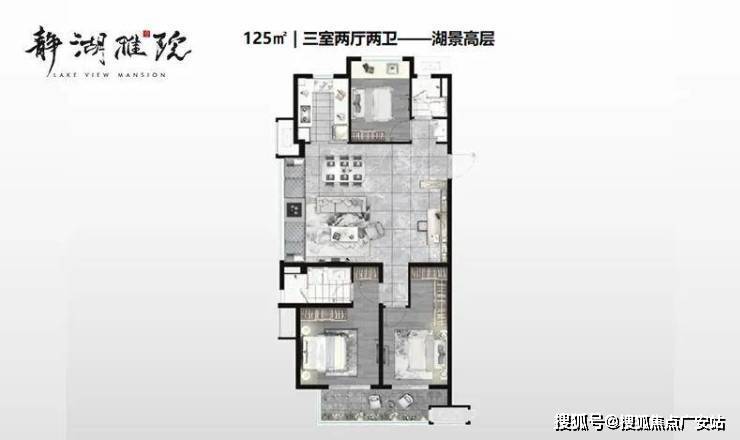 125㎡四居:总价约280万元起,四开间朝南,带双阳台,部分房源含湖景视野