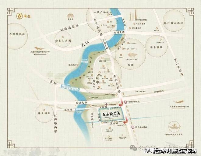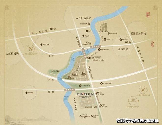 上海桃花源的择址,与传统市中心人民广场在南北中轴线上,由济阳路快速路、中环、外环以及各大隧桥快速连通市区,这是项目出则繁华的基础。