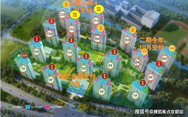 主力户型:有 95㎡、105㎡、118㎡三种户型,均为三居室设计。