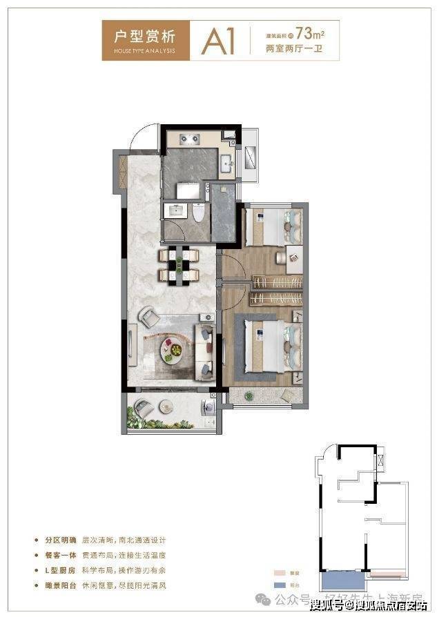 约73平两房户型,南北通透设计,南向瞰境阳台、主卧搭配飘窗,总价控制在200万不到,超低门槛,从容上车;