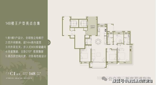 建筑面积约148㎡阔尺四房:高阶改善的奢居范本:类1梯1户设计,全明独立电梯厅营造归家仪式感;近14米南向面宽+四开间朝南,餐客厅一体化社交空间贯通景观阳台;内外双玄关+步入式储藏间,解决收纳痛点;主卧套房配270°揽景飘窗,沉浸式享受滨江奢居体验,满足高净值家庭的品质需求。中海云邸玖章售楼处电话:400-8657-114(最新房源推送)