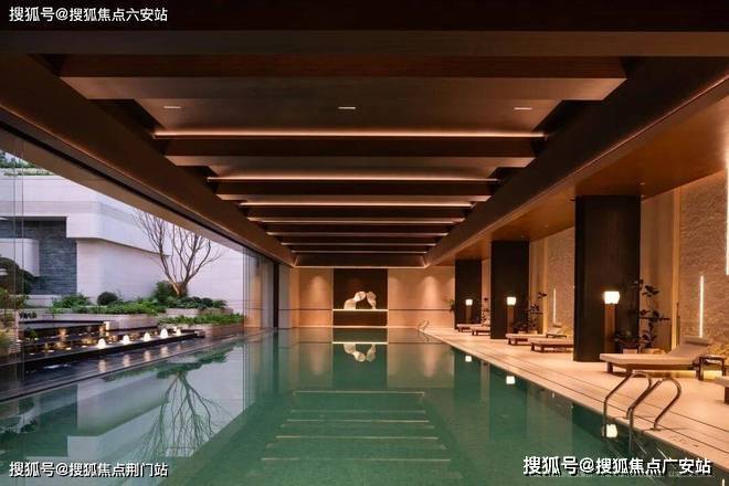 约1100㎡的下沉式会所是项目的“隐藏彩蛋”,其中的无界泳池设计通过可开闭玻璃门,实现开放式结构,与下沉庭院水系连成一片,游泳时与自然景观融为一体。