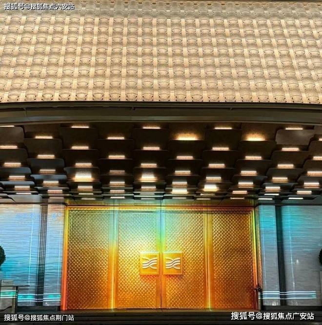 你看社区大门宽约46米,高约9米,灵感源自“京杭大运河博物馆”设计,顶部大约2280块水晶瓦精心雕琢,内部超300块金鳞铝板手工拼接,还有层叠水景,整个一看就贵气。