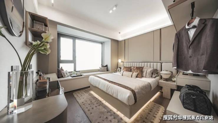 尤其奢阔主卧,南向开窗面积大,床尾支持放置梳妆台,甚至衣柜。