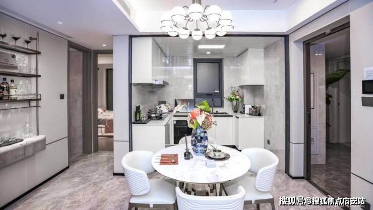 LDKG设计,让客、餐、厨、阳台四个空间打破传统布局中的“隔阂”,几个功能区独立又互通,将空间功能进一步放大。