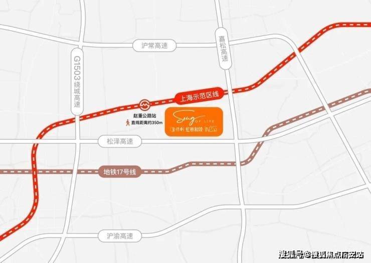 保利虹桥和颂·IN255不仅有轨交规划正在落地,且直线距离示范区线赵重公路站(在建)仅约350米,是不可多得的真轨交盘,2站前湾、3站虹桥枢纽、5站华为基地。
