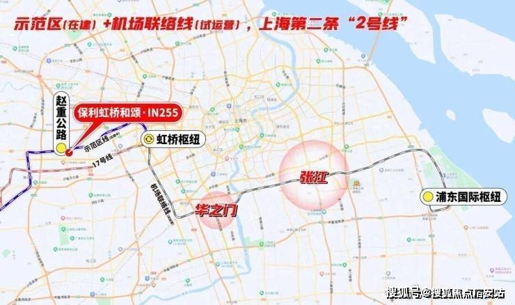而示范区线(在建)左手长三角一体化、华为,右手前湾、大虹桥总部商办,并通过虹桥枢纽,串联2号线及正在试运营的机场联络线,把市中心、徐汇、闵行、张江等高能板块都纳入保利虹桥和颂·IN255的通勤版图。