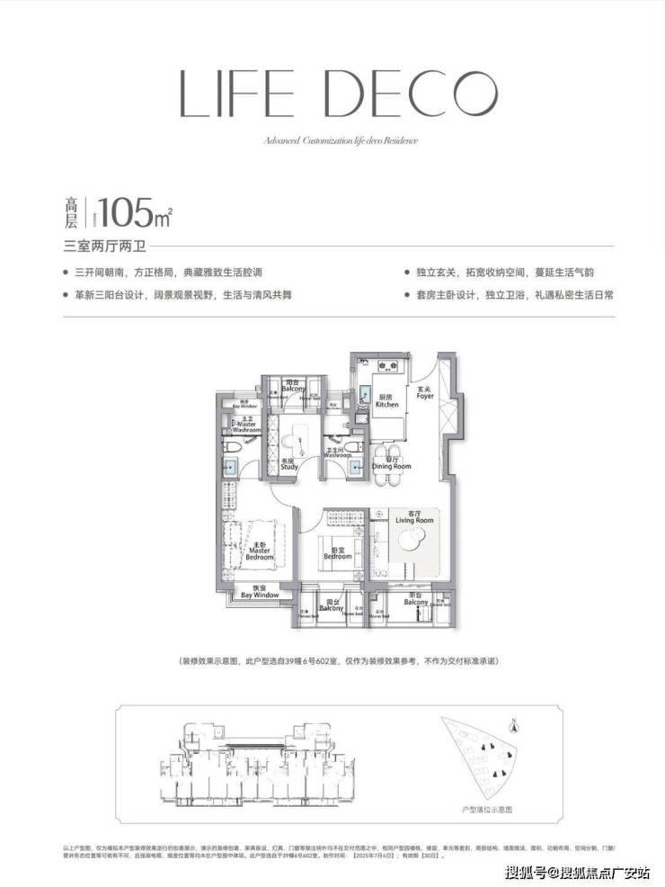 2、延伸空间拉满!主卧套房飘窗+步入式衣帽间+独立卫浴拥有2个飘窗,尊崇感与实用性拉满!三阳台+花池+4飘窗结构,有效延伸空间,实际使用空间更奢阔!