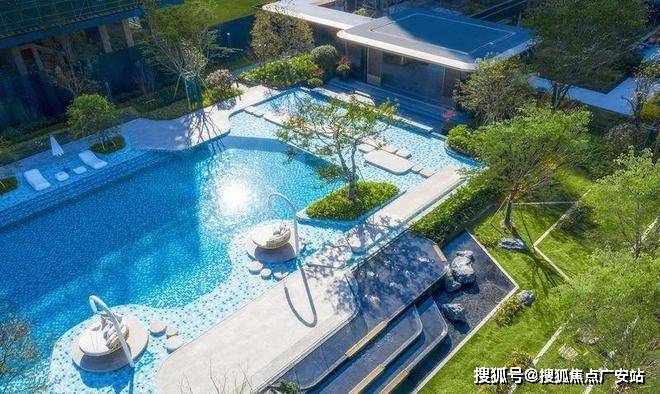 顺着下沉式庭院动线往里,还有把戏水区、亲水吧台、水上滑梯等空间融合在一起的泳池综合区,无论是孩子还是家长都能在这里游玩。