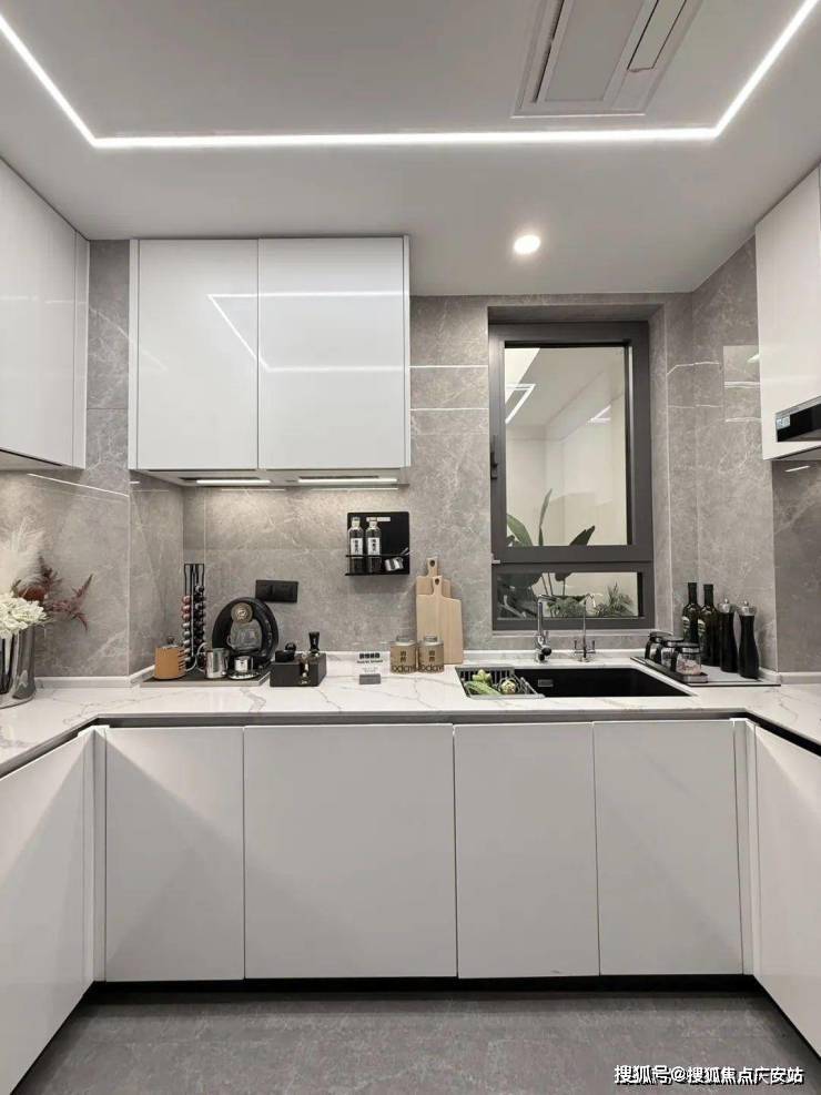 厨房空间,甄选西门子新款的抽油烟机、灶具、洗碗机等,甚至连大部分项目不配备的冰箱也是交付标准;还特别配置了轨道插座、前端净水器和凉霸;吊轨金属玻璃移门,既美观又方便清理。