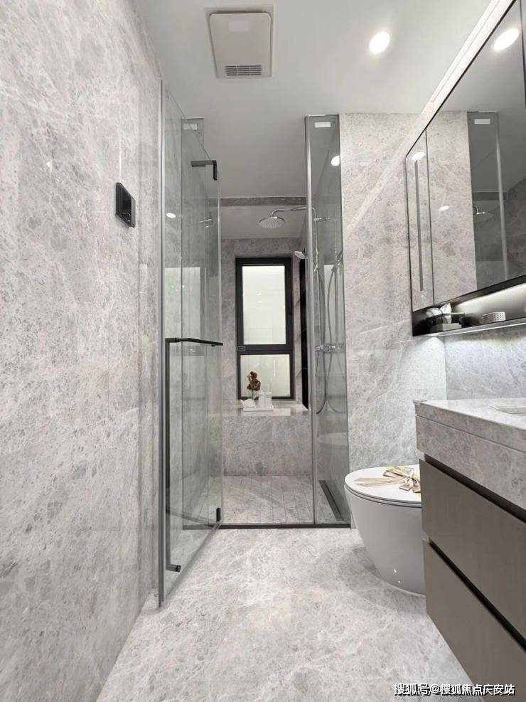 所有户型全屋墙纸交付,连电视机背景墙岩板以及主卧背景墙都是交付标准,卫生间甄选不同的石材,以此来满足功能区的需求。