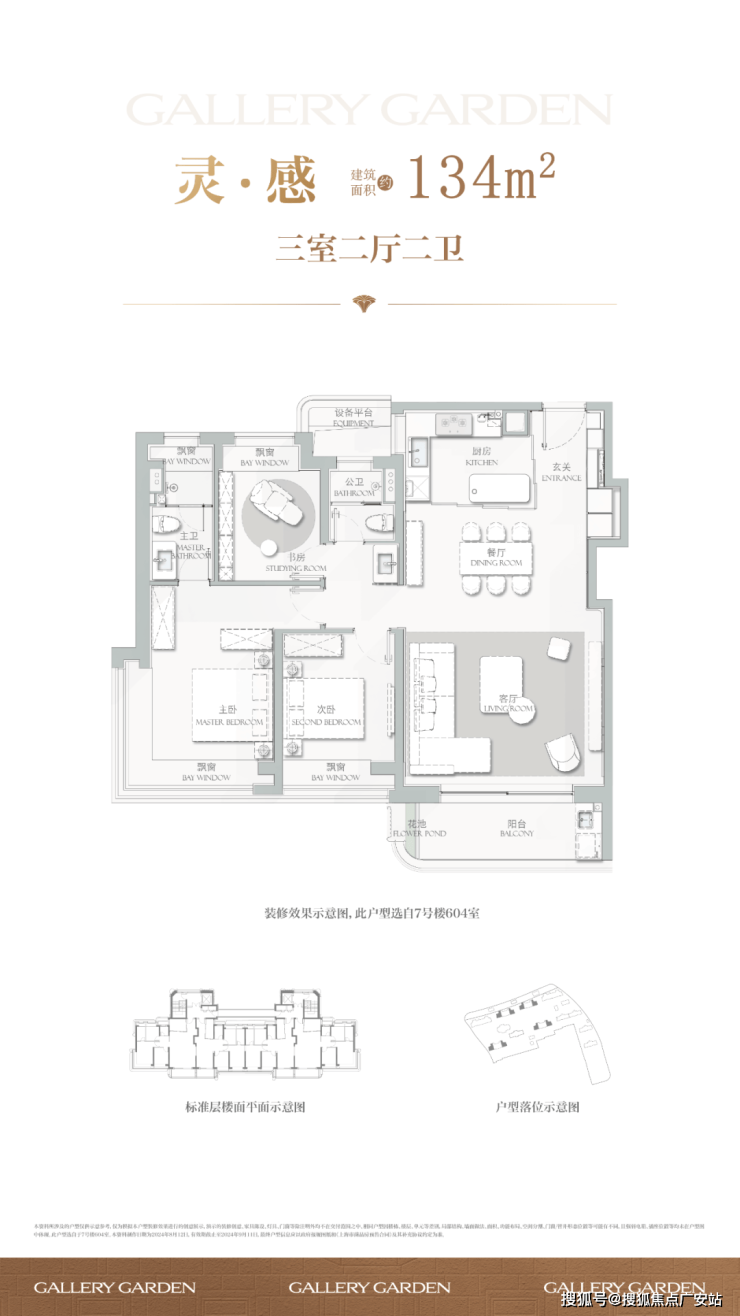 建面约134㎡3房2厅2卫▼