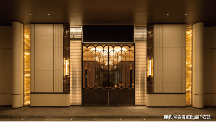 【海上·清和玺】空间采用奢材定制,将品质延续到每个细节中.门庭延街的外立面,以精工定制弧形贝金米黄大理石为主调,镶嵌典藏级老虎玉大理石,点缀古铜色现代海派艺术感灯器.整体呈现一种流转于百年海派的贵雅气质.