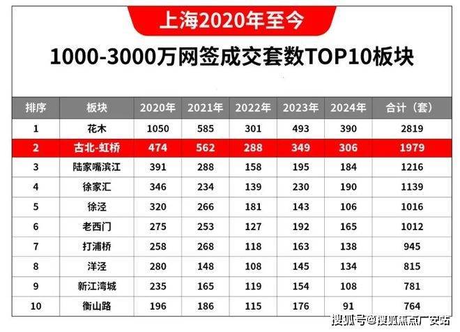 数据显示,2020年至今,上海1000-3000万价格段的二手房网签成交量中,古北连续5年高居全市第二,仅次于面积和楼市体量都远超古北的花木板块!