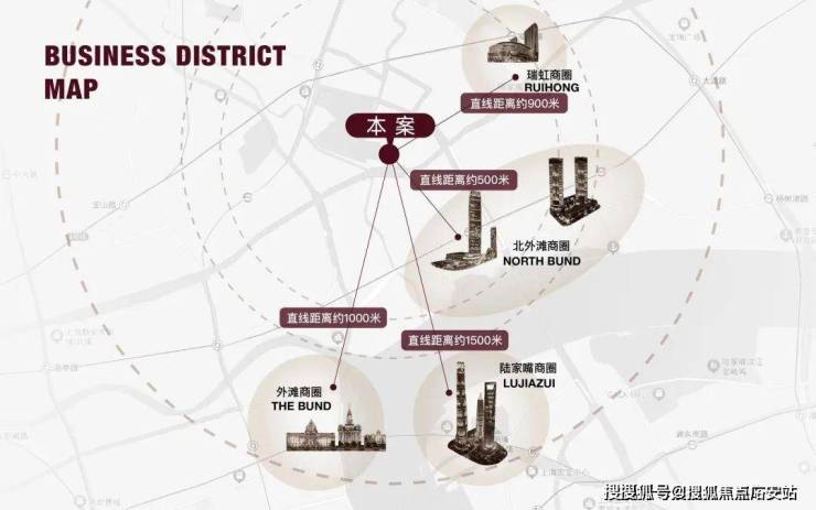 【核心商圈 | 高阶商业配套 国际摩登领潮】商业配套方面项目约2公里内多元繁华构筑封面商业圈,北外滩商圈直线距离约500米;外滩商圈直线距离约1000米;陆家嘴商圈直线距离约1500米;瑞虹商圈直线距离约900米;