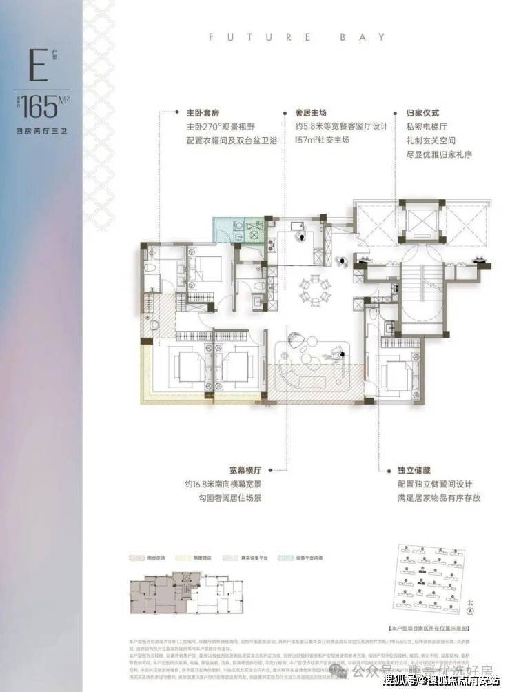 ◎约16.85米南向面宽:远超同面积产品,尺度堪称奢阔。◎约6米宽厅+约60㎡餐客厅面积:媲美市场200㎡级以上大平层的空间体验。◎主卧270°转角飘窗:极大提升采光与观景视野