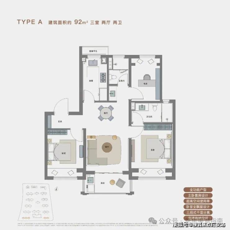 浦发上品主推建面约92-101㎡3房,3种全功能户型。