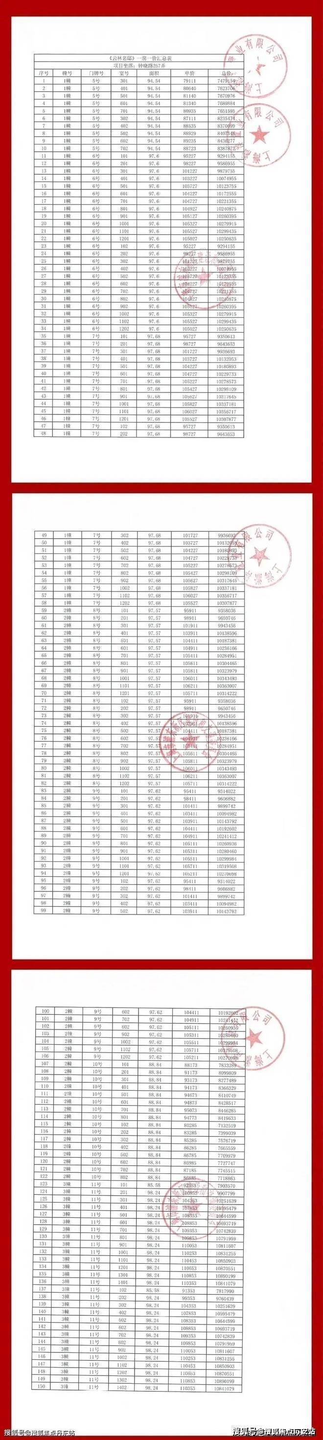 项目一房一价表