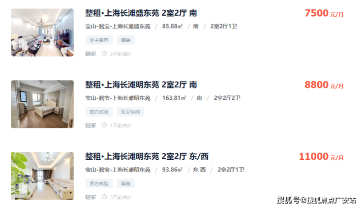 给大家参考一下附近租金,我选择了上海长滩前期的2房户型,租金至少在7500元/月,非常可观。