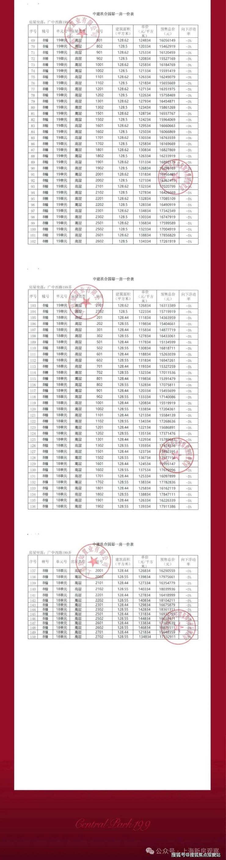 一房一价表如下