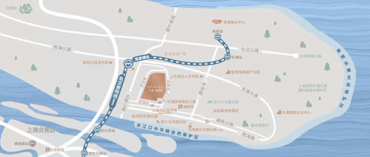 地理位置:地处崇明岛东滩板块,北临北陈公路,周边有东滩湿地公园、上海实验学校附属东滩学校等配套