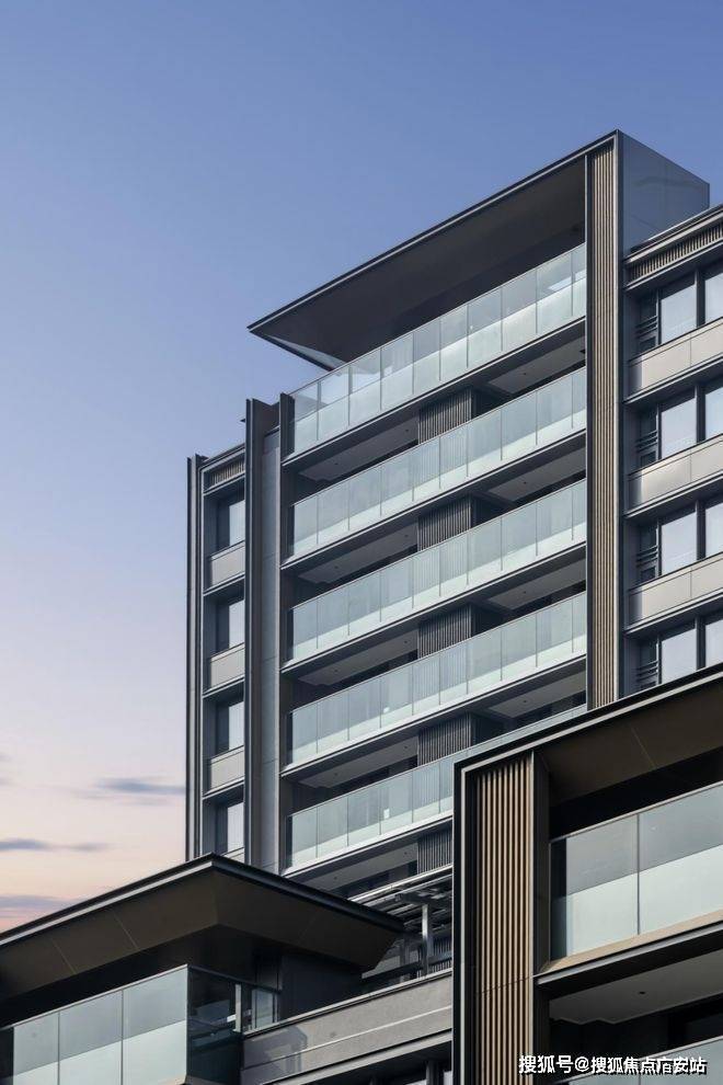 建筑立面的呈现,是项目对“历久弥新”承诺的直观回答。设计溯源新加坡Nassim Road等国际豪宅的现代主义语汇,以大面玻璃幕墙、金属格栅与高品质铝板,构成富有节奏感的三重奏。主色调“学府灰”沉稳内敛,搭配精工镶嵌的玫瑰金色金属线条,在阳光下折射出如珠宝般的细腻光泽。这种对材质拼接精度、立面平整度与细节收口的严苛控制,确保了建筑在时光中依然能保持优雅的轮廓与质感。