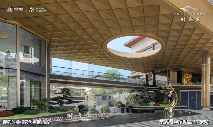 走进项目,首先映入眼帘的是约70米宽的尺度,约9米高的鎏金天幕入口,十分气派。大堂采用创新性的偏置设计,打破了传统空间的单调感,让归家动线宛如一条艺术长廊。自动扶梯穿梭于立体花园之间,使整个归家路线形成立体的空间体验,这种创新的“三维归家体系”在杭州尚属首例。