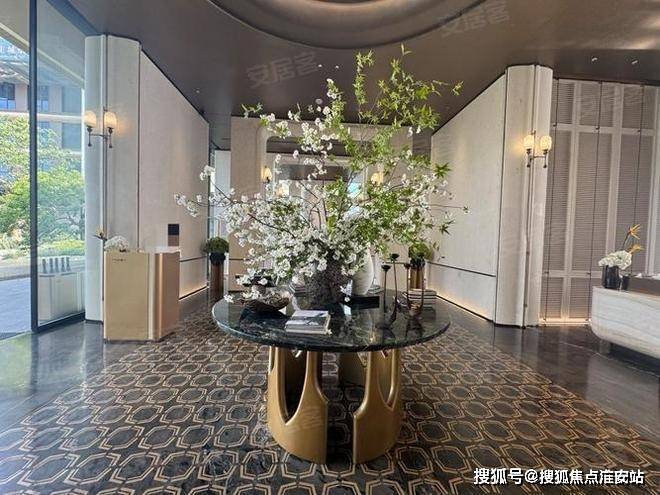 还有挑檐设计的架空层泛会所、地下车马院、艺术长廊,以及贝金米黄石材、水纹玻璃、海浪灰花岗岩、约12m通高落地玻璃……