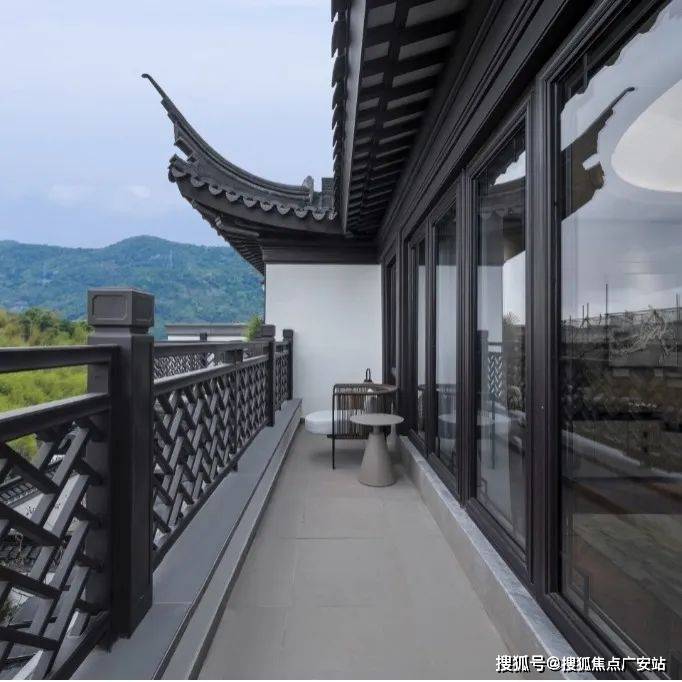 屋檐是屋顶距离人的视线最近的部位,檐口是屋檐的末端。为保留飞檐的灵动,澜院严谨推敲屋面弧度,屋面檐口采用平檐的檐口做法,工艺材质则使用铝代木,在“不可增一分,不可短一毫”的苛刻技法下,描摹中式建筑的柔美曼妙,整个屋顶也更加奢华耐久、现代精致。