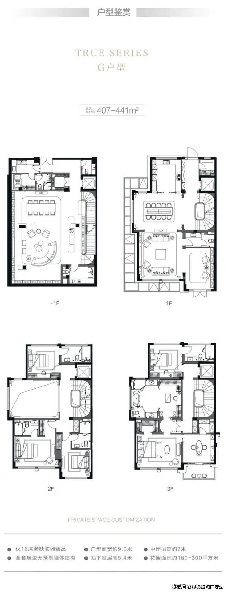在售户型:建面约310-410平米,地上三层地下一层