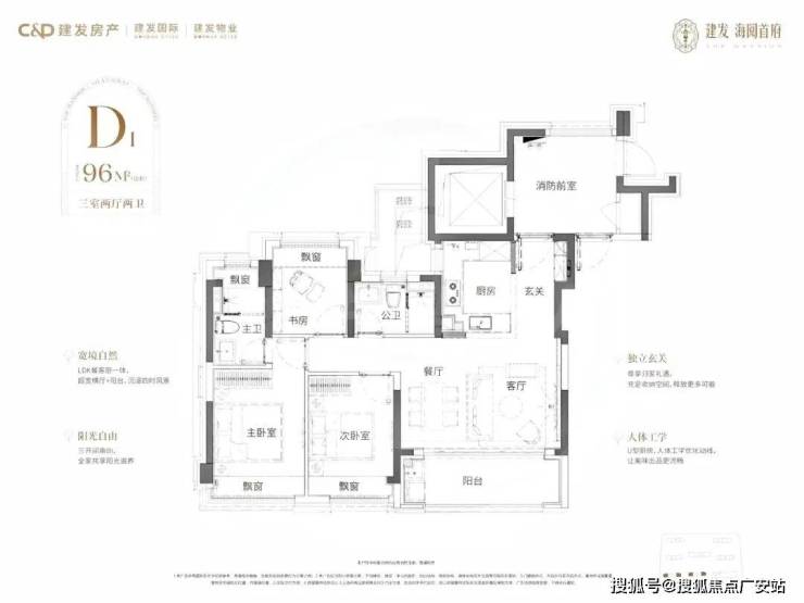 本次建面约96㎡3房66套
