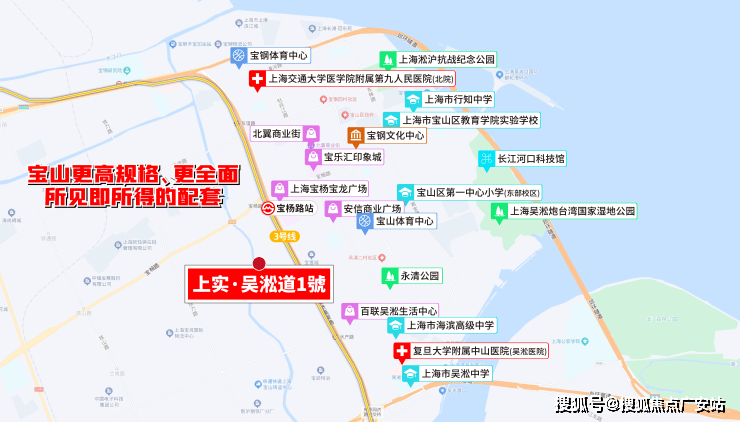 位置:宝山区沐芳路 158 弄,淞宝核心,吴淞创新城启动区,距 3 号线宝杨路站直线约 500 米,近黄浦江畔