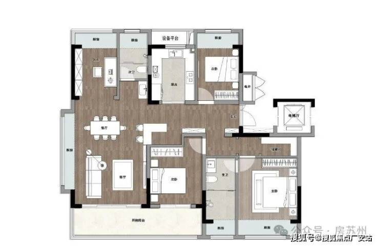 三卧四开间朝南 | 入户电梯独立空间 | 双联阔景阳台 | 超大开间厨房外接餐厅 | 主卧宽奢套房