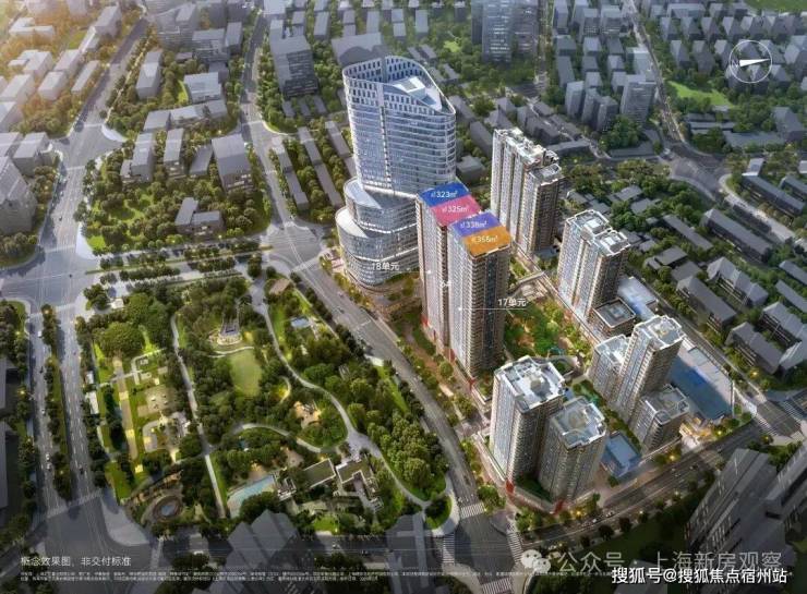 外立面方面,项目整体将打造为新海派建筑地标,设计有弧线阳台、45度玻璃、双层塔冠等,设计灵感来源于蔓楼兰;立面色调方面,将采用珐琅彩色调,具体或为珍珠蓝铝板+红色纹理+金色线条,具体材料及配色还在最终确认。