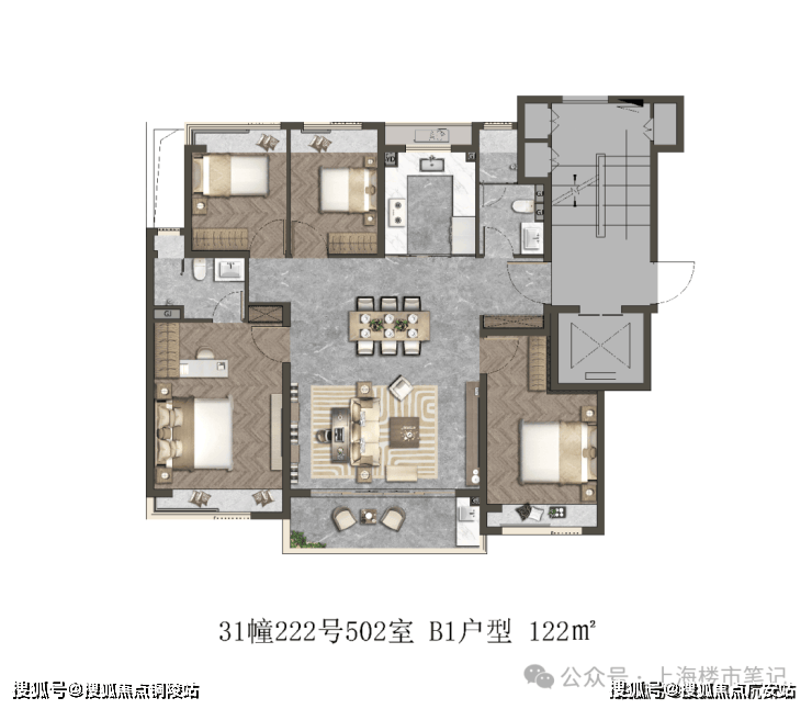 建面约122㎡四房:6飘窗+1阳台的超高实得率,几乎没有纯走道空间,让每一寸面积都物尽其用。主卧套房设计,步入式衣帽间+独立主卫,妥帖安放主人的私密与尊崇。
