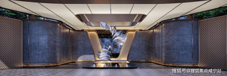 臻奢寰宇×艺术×超尺度,约95米城市超级界面·双重归家礼——蓝翡翠镜面奢石烘托,奢舞流转艺术雕塑。