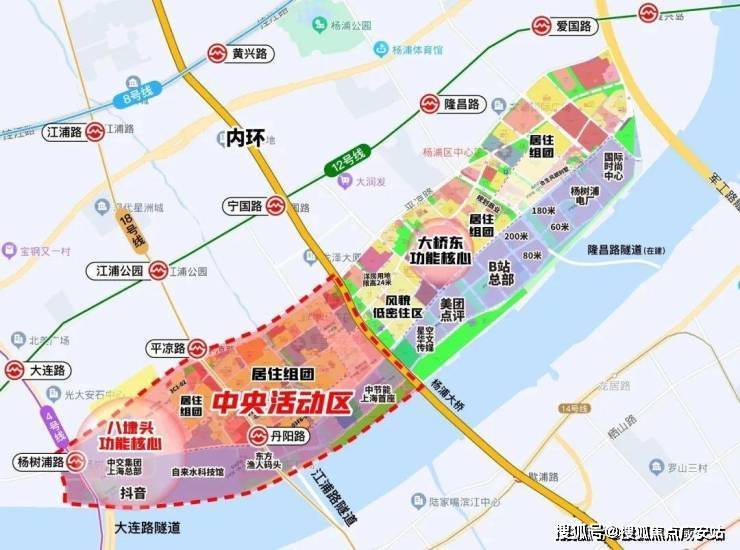 其中,中央活动区内拥有中交集团上海总部、字节跳动上海滨江中心、中节能上海首座、八埭头综合体、东方渔人码头等地标产业&建筑。