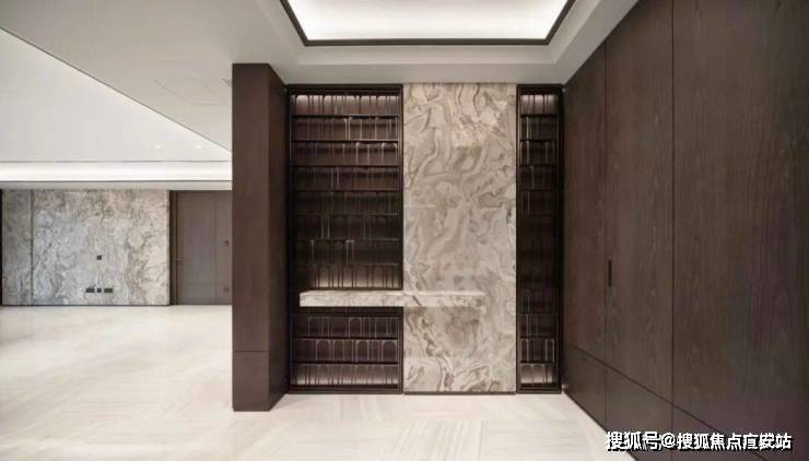 推开房门的刹那,尊贵感更是油然而生,重工且精致的玄关背景墙,审美调性也很高。