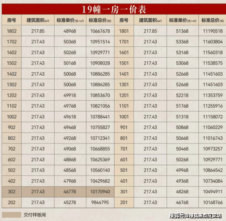 但这幢非同小可!建面约215方,既是项目的最大面积,也是小区的楼王,仅此一幢。终于就在11.19,这套房源预售证公示,均价约5.008万/平!