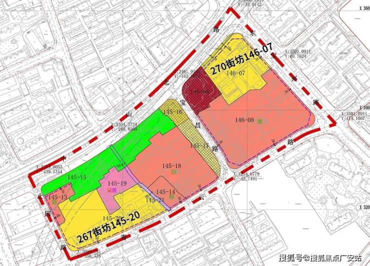 两地块位置相邻,相距不足300米,地处中兴社区核心区域,四至范围为北至中山北路,西至止园路,南至青云路,东至东宝兴路,总面积约13.03公顷。