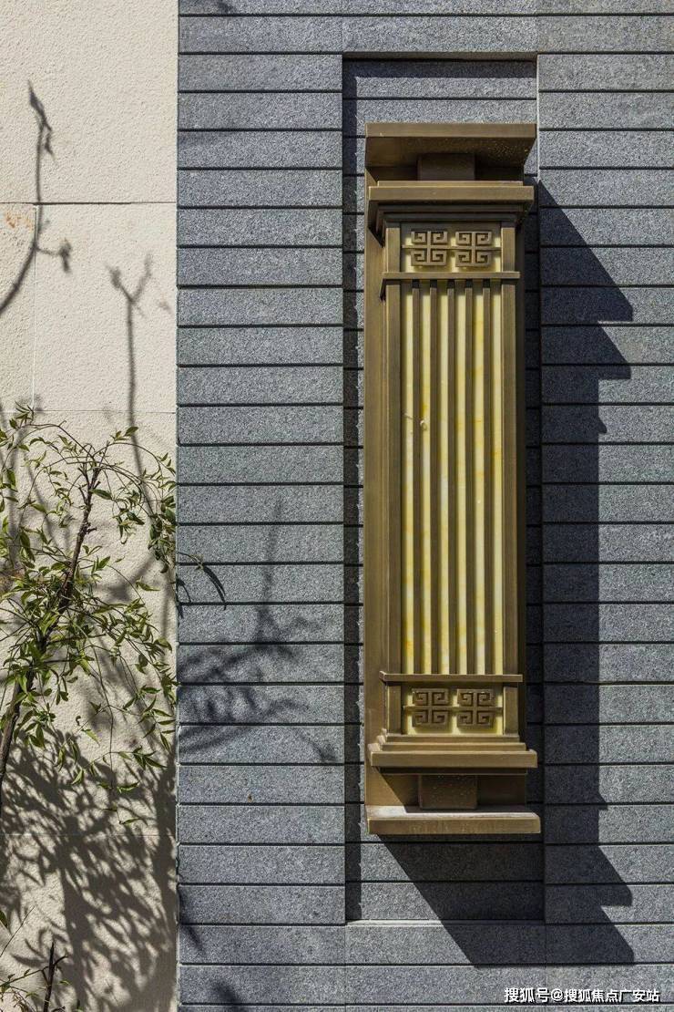 而楼王大门两侧的铜灯形式,由故宫宫灯演化而来,纹饰由传统“席纹”和成熟于盛唐的“卷草纹”组合而成,线条简洁明快,黄铜质地经霜耐雪,堪称致敬盛唐的经典之作。