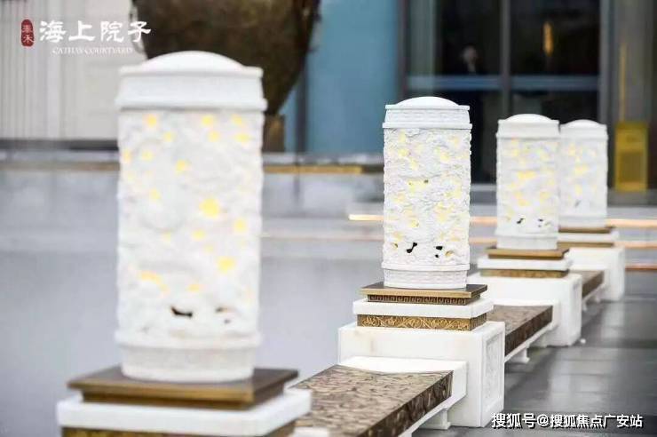 在泰禾海上院子中,四处可见的抱鼓石使用的都是汉白玉材质,彰显了门第尊贵和大户人家的奢华。