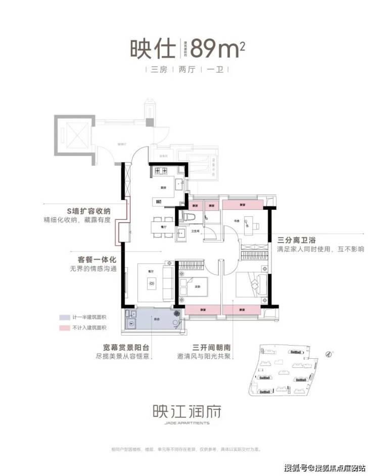 亮点二:高效扩容的收纳,扩充家的容积。小户型的痛点在于,随着家庭人口机构的变化和居住年限拉长带来的收纳难题,映江润府贴心打造玄关系统、餐厨系统、卫浴系统、休憩系统、灵动系统等六大收纳系统,不止关注家的面积,更关注家的容积。