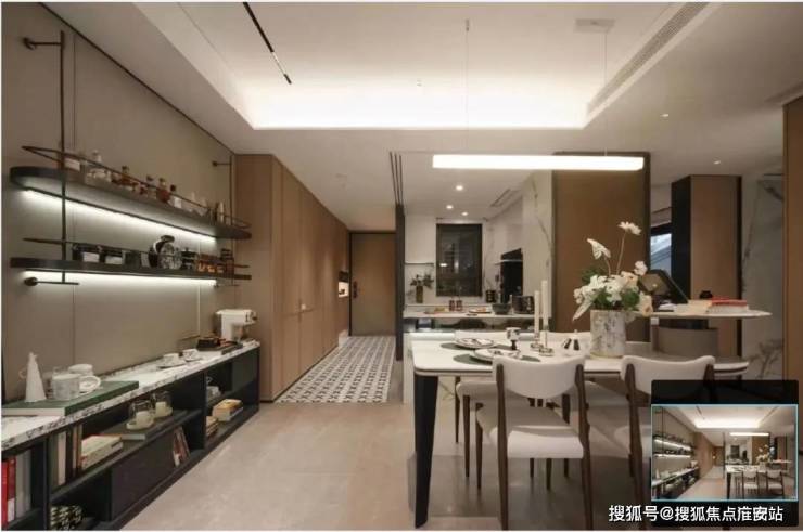 亮点二:客餐厅一体化,无隐藏空间浪费。空间的舒适度,不只来源于体现在面积的大小,更体现在功能区分的巧妙排布,映江润府,以快餐厅一体化设计,消除了“走廊式”隐形空间浪费,为家打造无界的交流空间