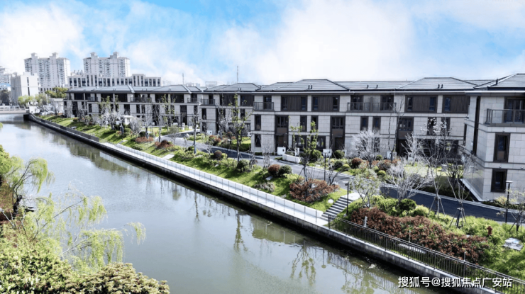 值得一提,项目临水而建,沿河设有绿化景观步带,构建了难得一见的新古典建筑风格墅区,同时绿化率约40%,社区郁郁葱葱。