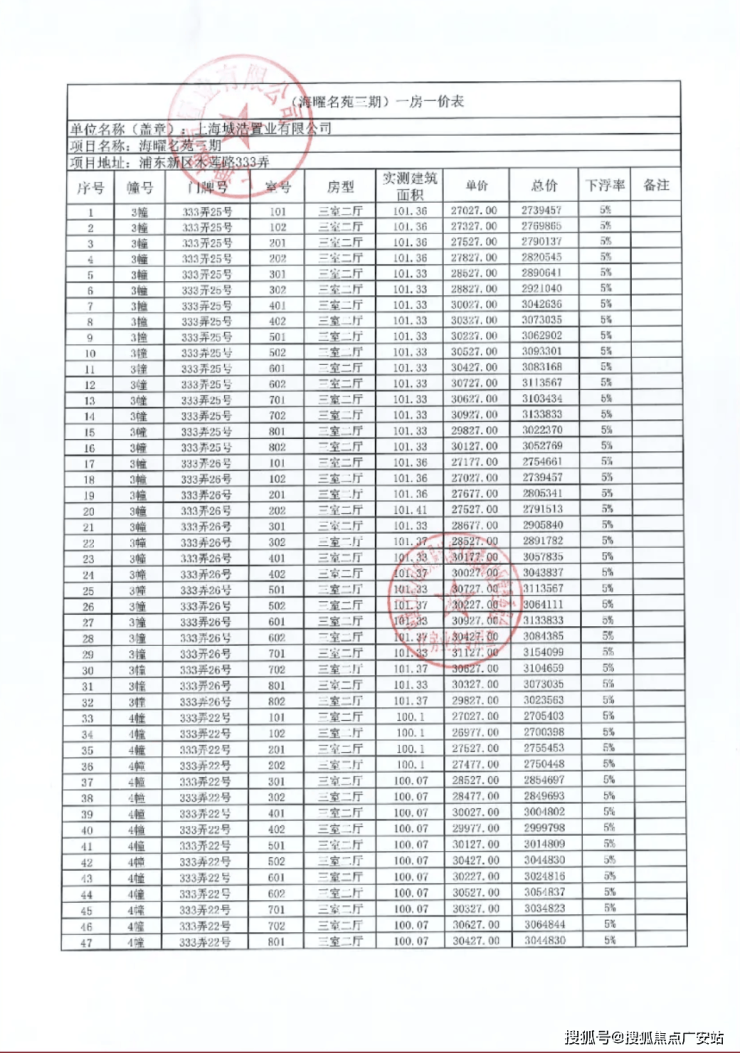 备案均价约3.05-3.3万元/㎡,一房一价。