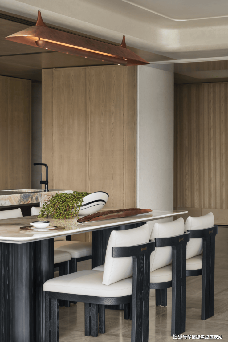 天然石材、木材与黄铜调和出空间醇厚质朴、温润坚定的雅奢调性,亲切而放松。