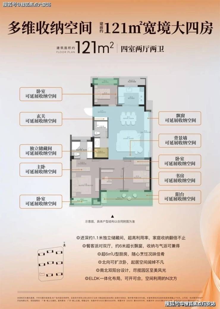 建面约121㎡四房采用LDK一体化设计,融汇餐、厅、厨于一方阔尺空间,三开间朝南、宽幕横厅、通透大阳台,引光纳景,延伸家的尺度与想象。该户型还特别规划“四房加一储”空间布局,在保证四房功能的基础上,增加储物空间,提升实用性与居住舒适度。